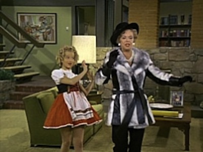 Here’s what happens in the episode: Earlier in the series, Cindy showed herself to be a tattletale; in this episode, she’s a snoop who reads her sister’s diary. Jan and Marcia decide to teach her a lesson (aren’t those Brady kids always teaching each other lessons?) and plant an entry about a talent scout being interested in making Cindy the next Shirley Temple. Say what you will, the Brady kids knew their classic cinema—Peter with his Humphrey Bogart voice in “The Personality Kid” and now Cindy, who styles herself like Shirley Temple and sings “Good Ship Lollipop” to Mike’s visiting client, convinced the woman is the talent scout. But she’s not. She’s Penelope Fletcher (played by “Lovey Howell” actress Natalie Schaeffer), and she’s a difficult client, but she is so charmed by Cindy that she joins her in the song and dance.
