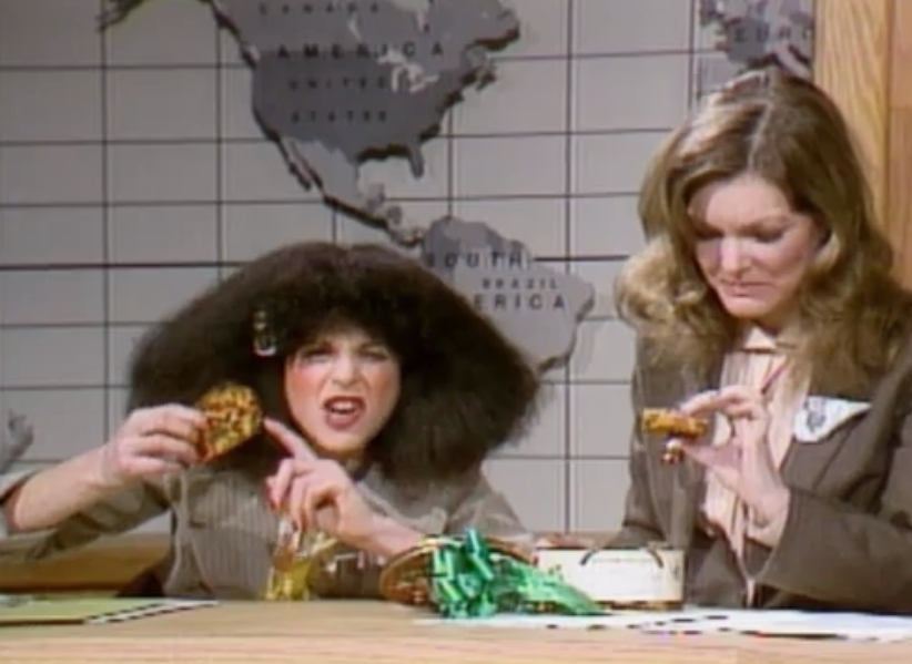 Fruitcakes always make me think of the time that Roseanne Roseannadanna (Gilda Radner) gave Jane Curtin a fruitcake on Saturday Night Live. As Jane pulled a long hair out of it, Roseanne told her, “You can just throw that out—it still tastes good.”