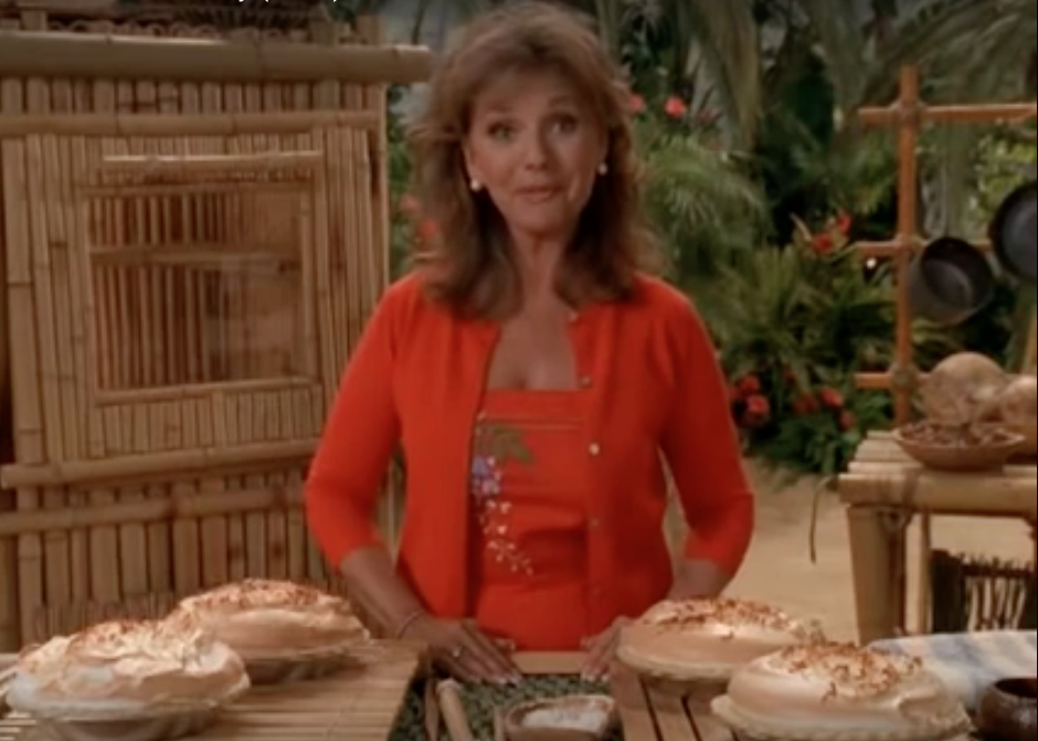 Dawn Wells bakes coconut cream pies while narrating the 2001 docudrama, Surviving Gilligan’s Island.